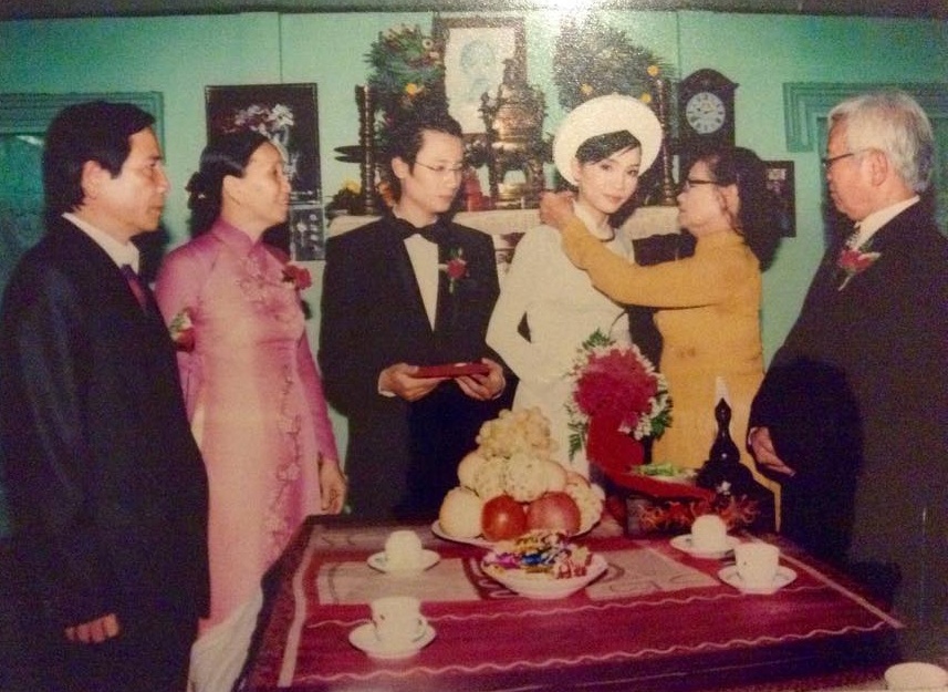 | Hoàng Bách và bà xã kết hôn năm 2006 khi nam ca sĩ 26 tuổi. Nhiều khán giả bày tỏ sự tiếc nuối khi một người hoạt động nhệ thuật như anh lại lập gia đình sớm. |