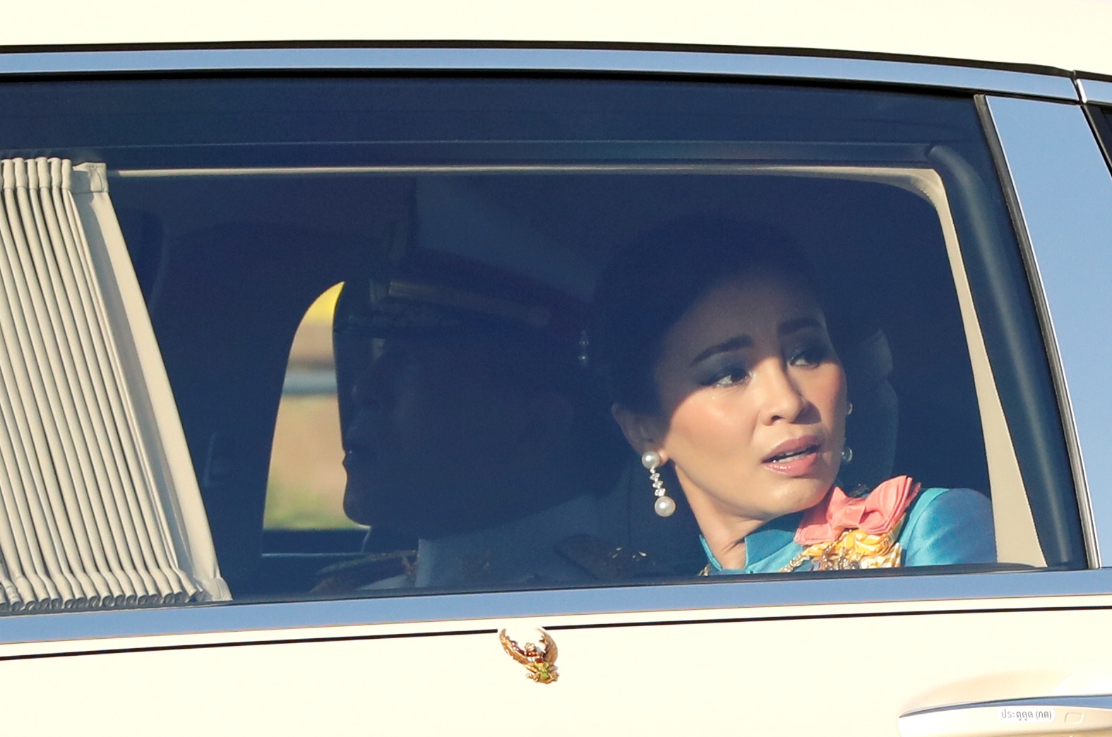 Trong khoảnh khắc hiếm hoi được phóng viên chụp lại, Hoàng hậu Suthida nhìn ra bên ngoài qua cửa kính ôtô với vẻ mặt căng thẳng, Nhà vua Rama X ngồi cạnh bà. Một tấm ảnh khác cho thấy bà đang mỉm cười vẫy tay chào người dân từ trong xe, không có mặt nhà vua.