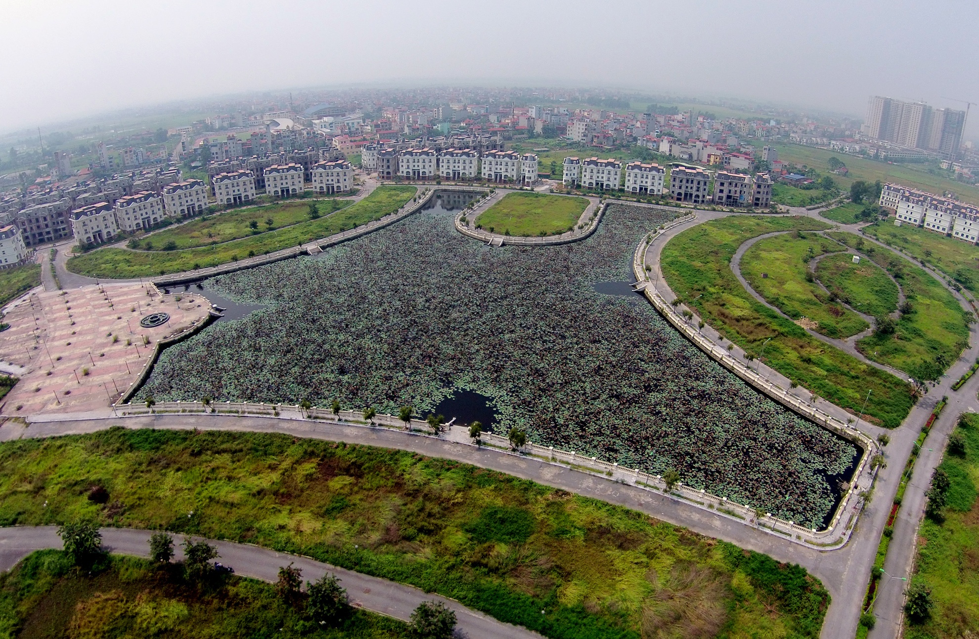 | Liền với hồ nước là khu thể thao, giải trí, ăn uống, thương mại, hành chính…. Ở khu vực này bố trí các biệt thự đơn lập, nhà vườn, nhà liền kề, nhà ở, lô phố, tận dụng tối đa cảnh quan mặt hồ và các công trình công cộng. Trong ảnh, hồ sen đen ngòm vì không được chăm sóc. |
