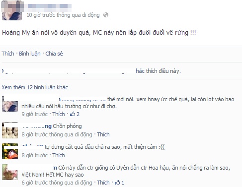 | Những topic về việc Hoàng My làm MC được cộng đồng mạng quan tâm, không ít người tiếc lời chê bai á hậu. |