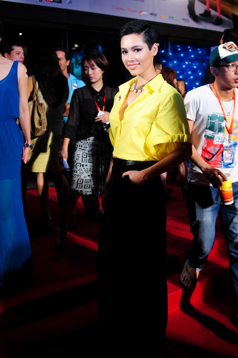 Từng có một thời gian dài gắn bó nhưng khi tái ngộ trong buổi công chiếu phim "Âm mưu giày gót nhọn" tối 14/10, nàng Á hậu lại chọn cách không nhìn tới Phillip Nguyễn.