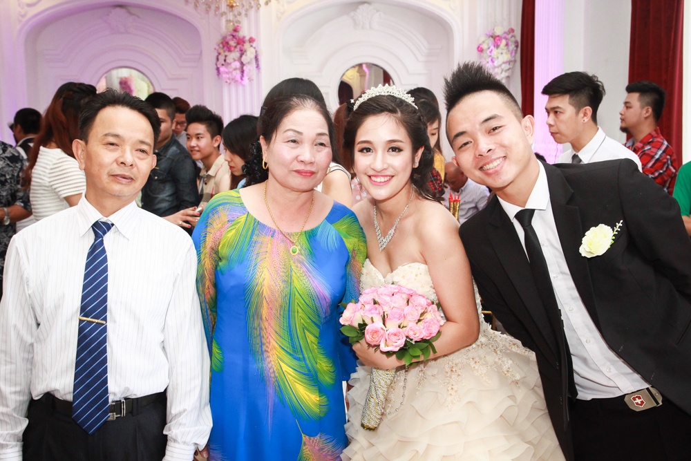 | Cặp đôi cùng gia đình trong giây phút thiêng liêng nhất của cuộc đời. |