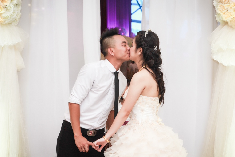 | Màn khoá môi ngọt ngào của đôi vợ chồng trẻ. |
