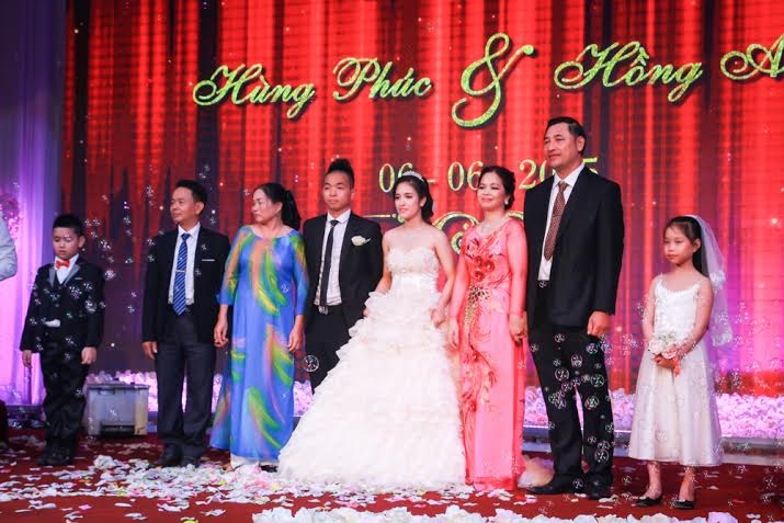 | Sau màn rước dâu, cả hai cùng gia đình đến trung tâm tiệc cưới chung vui với người thân, bạn bè. |