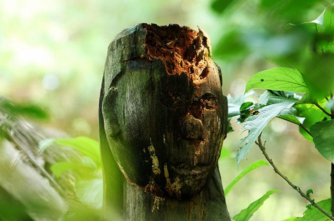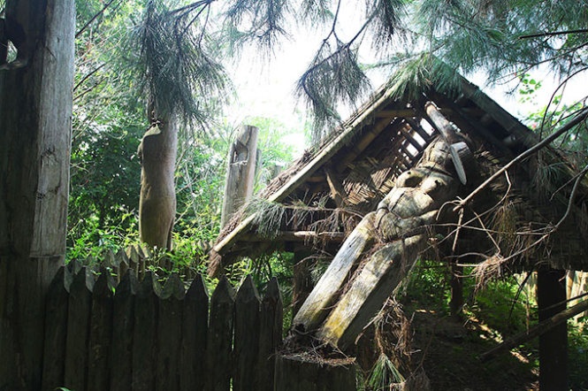 | Tại khu vực nhà mồ của dân tộc Gia Rai ở Làng văn hóa - du lịch các dân tộc Việt Nam, nhiều bức tượng gỗ bị mục. |