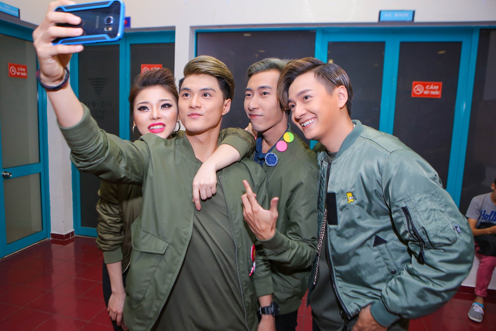| Ngô Kiến Huy vui nhộn khi đứng cạnh với các thành viên trong đội. |