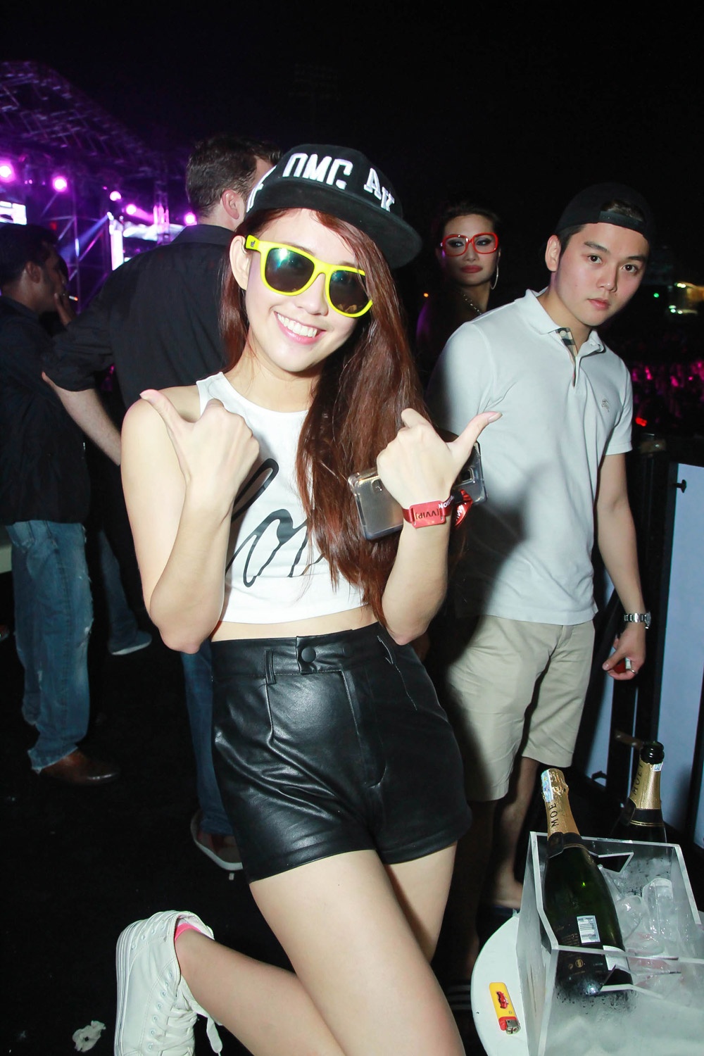 | Hot girl Ngọc Thảo cũng ăn mặc phong cách cá tính đi nghe nhạc. Cô liên tục nhún nhẩy và nhiệt tình cổ vũ cho DJ Hardwell. |