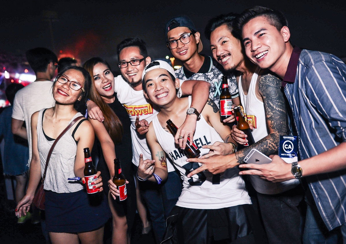 | Hardwell giữa biển người hâm mộ Việt và nước ngoài. |