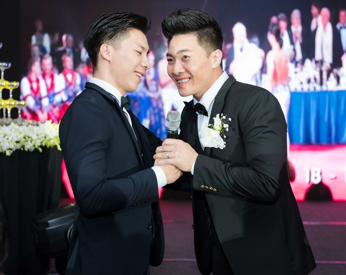 “Hôm nay, thật sự em rất vui khi nhìn thấy anh tìm được một nửa của đời mình. Từ nay, anh sẽ có chị dâu bên cạnh, thay em chăm sóc anh. Em chúc anh chị trăm năm hạnh phúc, sống bên nhau trọn đời”, Giang Quốc Nghiệp chia sẻ. Trước tâm tình của em trai, chồng Hồng Phượng mắt lệ nhòa vì xúc động. |