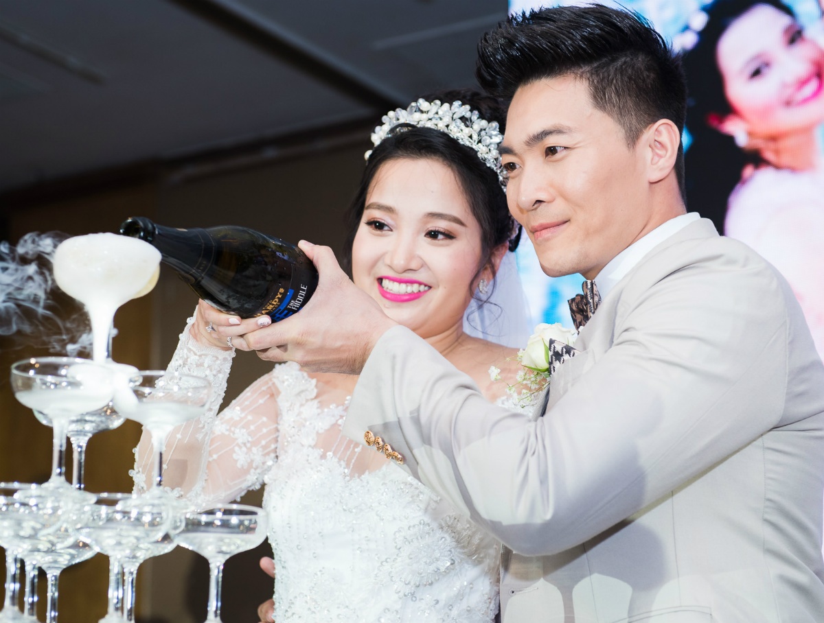 Cặp đôi rót rượu mừng và không quên chia sẻ niềm vui cùng mọi người. Hai vợ chồng đã lên kế hoạch sinh em bé sau đám cưới, tuy nhiên, Hồng Phượng tâm niệm mọi thứ vẫn tùy duyên. |