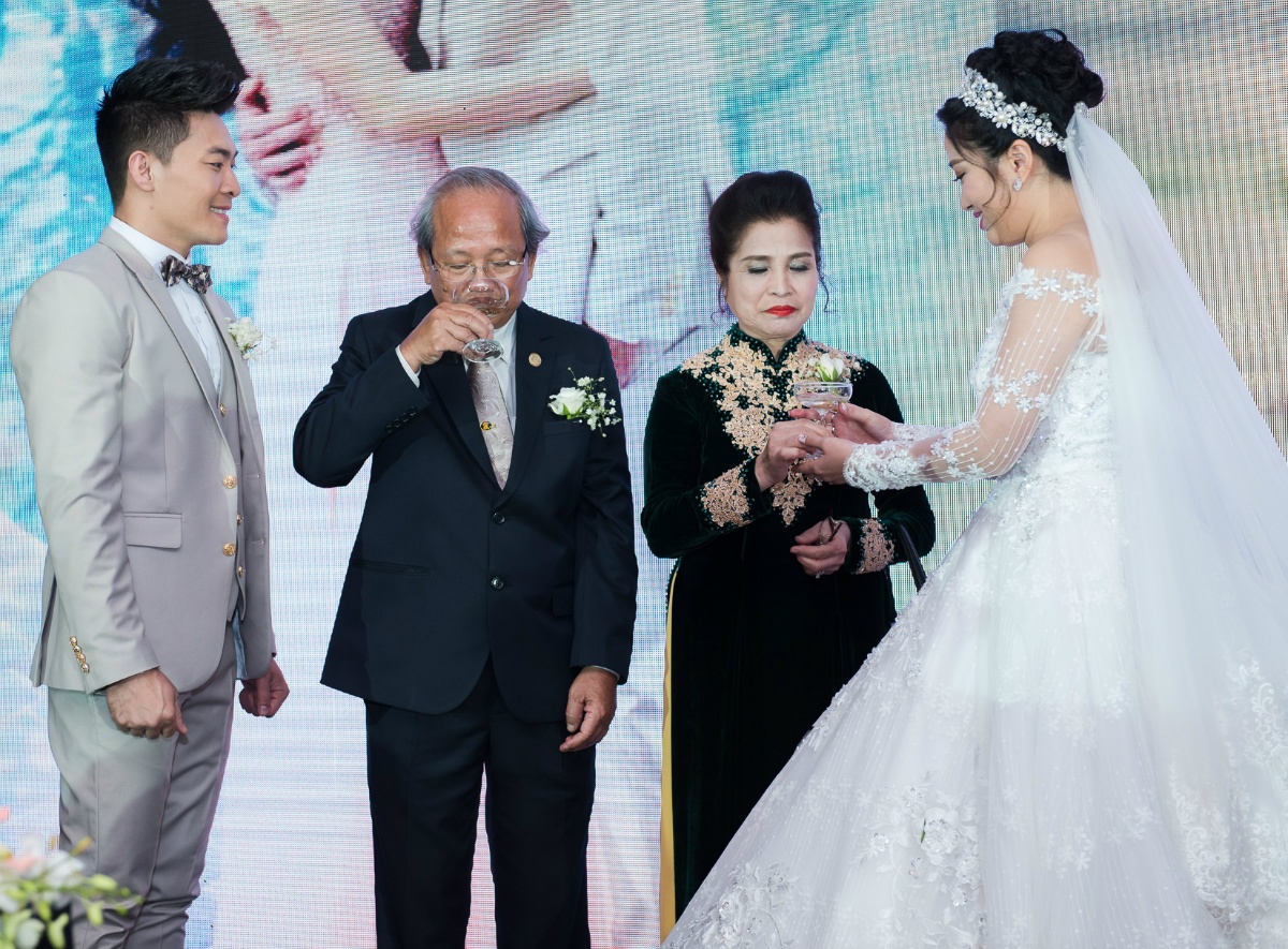 Cô dâu và chú rể nói lời cảm ơn bố mẹ 2 bên và hứa với nhau sẽ đi đến trọn đời. Bố mẹ của họ cũng dành những lời chúc phúc đến con cái. |