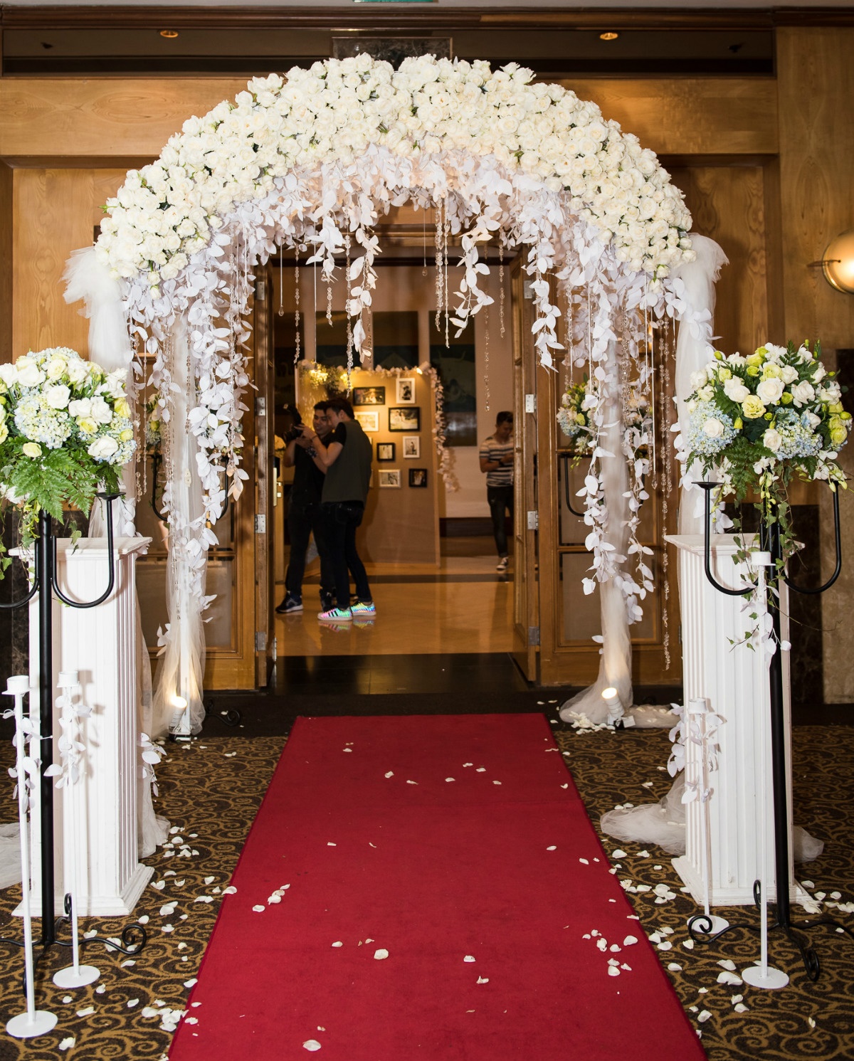 Tối 27/2, lễ cưới của MC Hồng Phượng và Giang Quốc Cơ tổ chức tại một khách sạn sang trọng ở trung tâm TP HCM. Không gian cưới được thiết kế bằng hoa tươi với màu trắng là chủ đạo, mang lại cảm giác dễ chịu cho quan khách. Đây cũng là màu yêu thích của cô dâu. |
