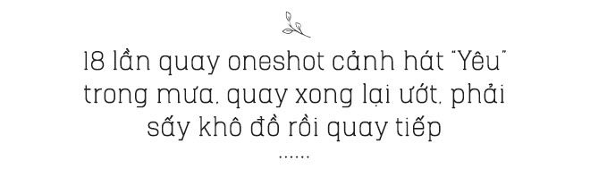 - Quay lại với "Yêu", trong phim, chị phải diễn một cú “oneshot” vừa múa với ô vừa hát dưới một cơn mưa nữa. Cảnh quay này được thực hiện như thế nào?