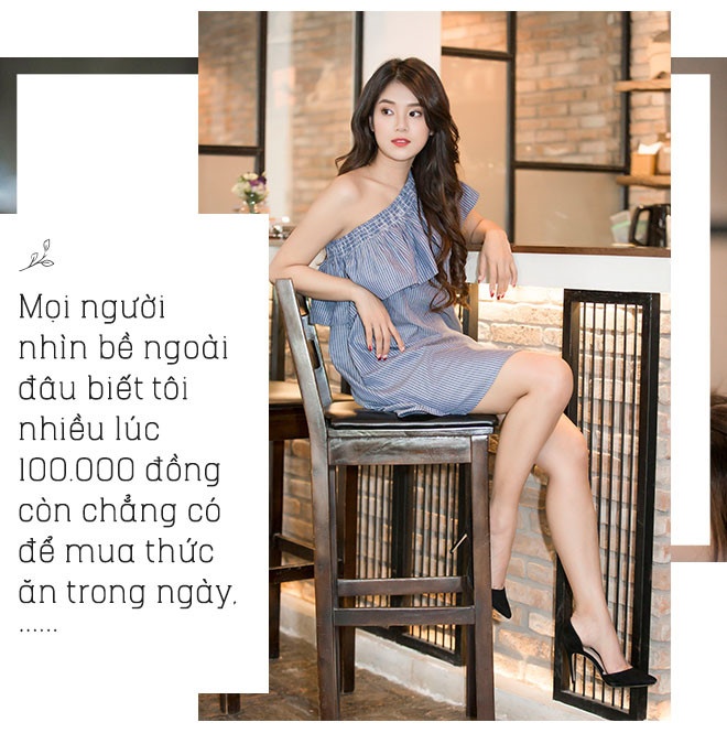 - Đó là mọi người chỉ nhìn bề ngoài thôi, họ đâu biết tôi có những lúc 100.000 đồng còn chẳng có để mua thức ăn trong ngày. Có những lúc, trong ví tôi có 10.000 đồng. Hồi mới vào Sài Gòn, có khoảng thời gian cả nhà khó khăn đến mức tiết kiệm từng đồng, từng đồng một, không dám đi ăn hàng, không dám mua quần áo. Đợt đó tất cả quần áo tôi gửi từ Hà Nội vào rồi cứ thế mà mặc.