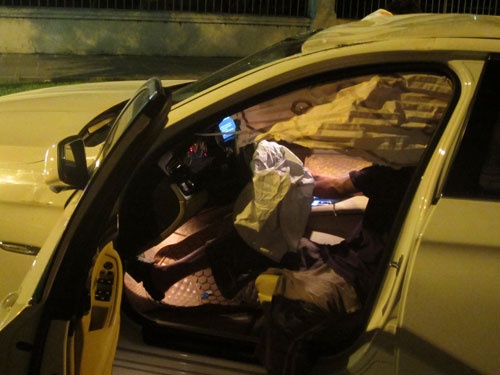 | Cận cảnh chiếc xe gây ra tai nạn của siêu mẫu Hoàng Yến. |