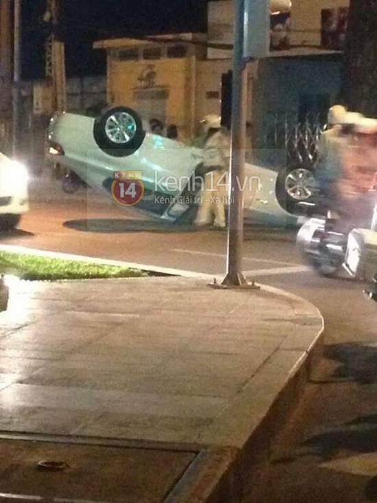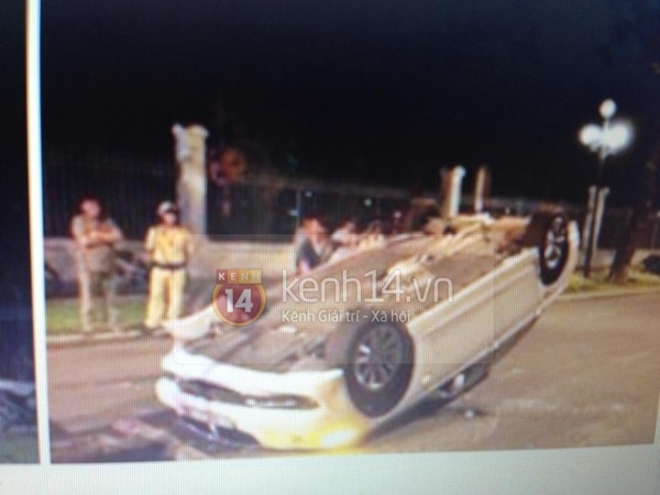 | Hình ảnh tai nạn lật xe của siêu mẫu Hoàng Yến đang được cư dân mạng chia sẻ. |