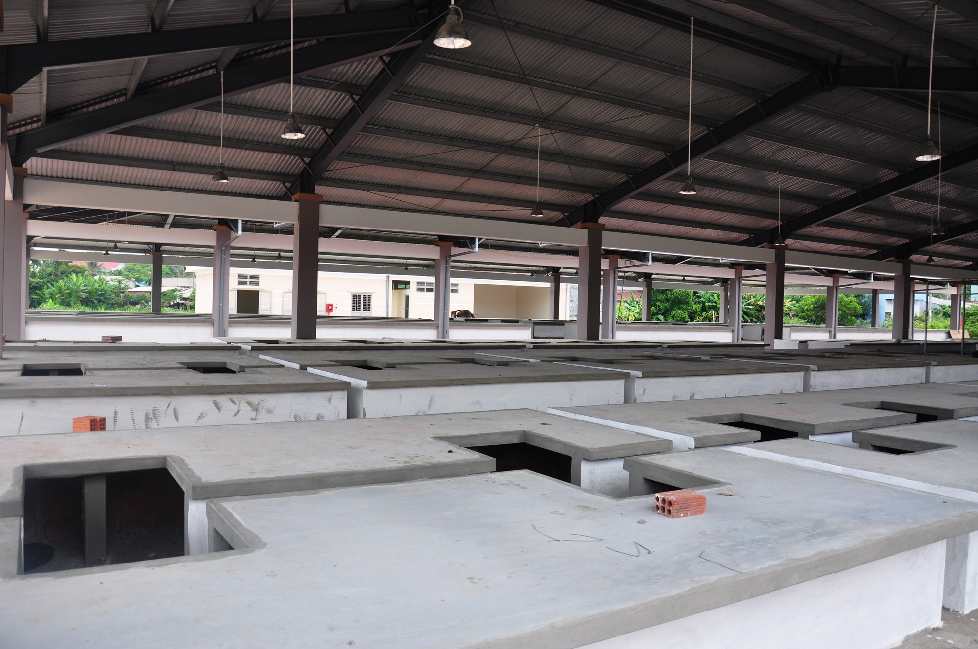 | Khu nhà lồng chợ mới Đức Phổ. Đây là nơi kinh doanh mặt hàng tươi sống nhưng vẫn chưa có tiểu thương. Theo nhiều người kinh doanh, thời gian qua họ chưa chịu đến chợ mới buôn bán là do từng tốn quá nhiều chi phí sửa chữa, nâng cấp chợ cũ. Mặc khác, các chị em còn lo ngại việc khách hàng đang quen địa điểm cũ, gần nhà, khi phải đi xa cả người bán lẫn người mua sẽ gặp khó khăn. |