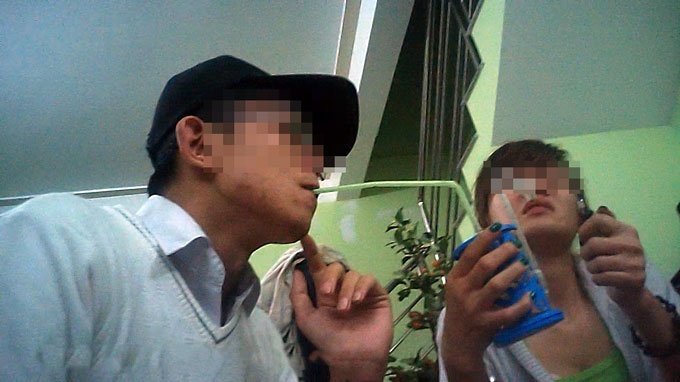| Nhóm hút bồ đà gồm nhiều học sinh của M. 'bu', có cả nữ sinh, chơi 'bu' tại nhà ở thôn 2, xã Đam B’ri, TP Bảo Lộc. |