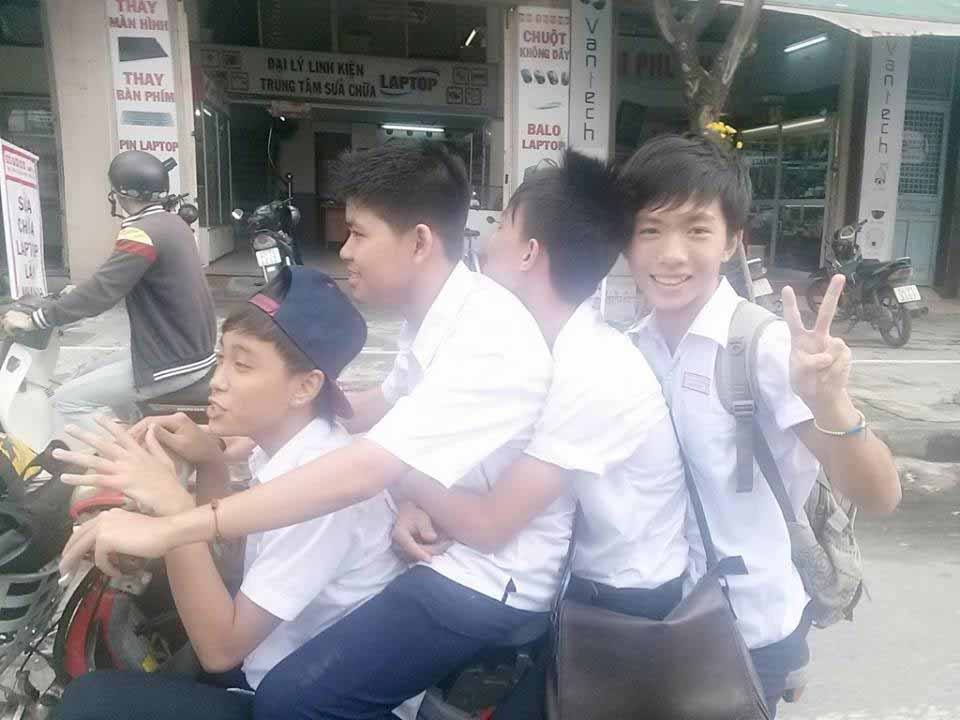 | Nữ sinh cũng kẹp 3 trên chiếc xe đạp điện. |