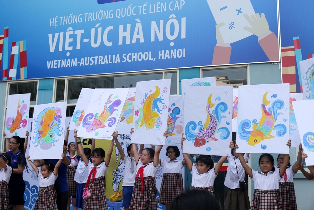 | Tại trường liên cấp Việt Úc (Hà Nội), bữa tiệc Vui hội trăng rằm được tổ chức rộn rã, bao gồm hoạt động thi bày mâm ngũ quả, văn nghệ và trò chơi trí tuệ, nhằm đem đến cho các em sân chơi bổ ích và hiểu thêm về ý nghĩa của ngày trung thu. |
