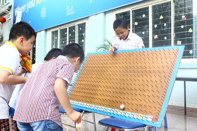 | Trò zíc-zắc dành cho học sinh tiểu học ở một góc sân khấu. Đại diện nhà trường chia sẻ, những trò chơi do các thầy cô lựa chọn không chỉ mang đến giây phút giải lao sau giờ học căng thẳng, mà còn kích thích tư duy, sự hiểu biết của các bé trong mỗi thách thức nảy sinh. |