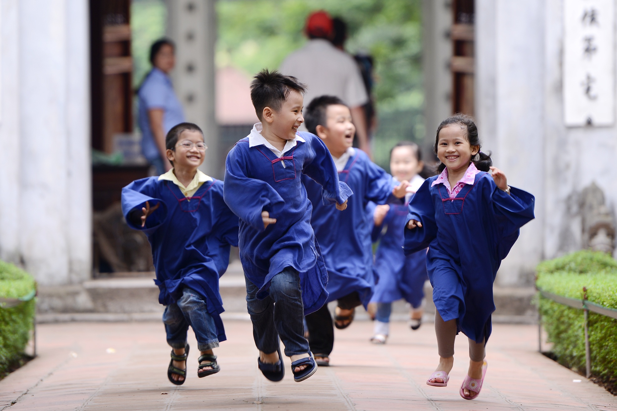 | Các "cử nhân" nhí được dịp hồn nhiên đùa vui trong khuôn viên trường đại học đầu tiên của Việt Nam. |
