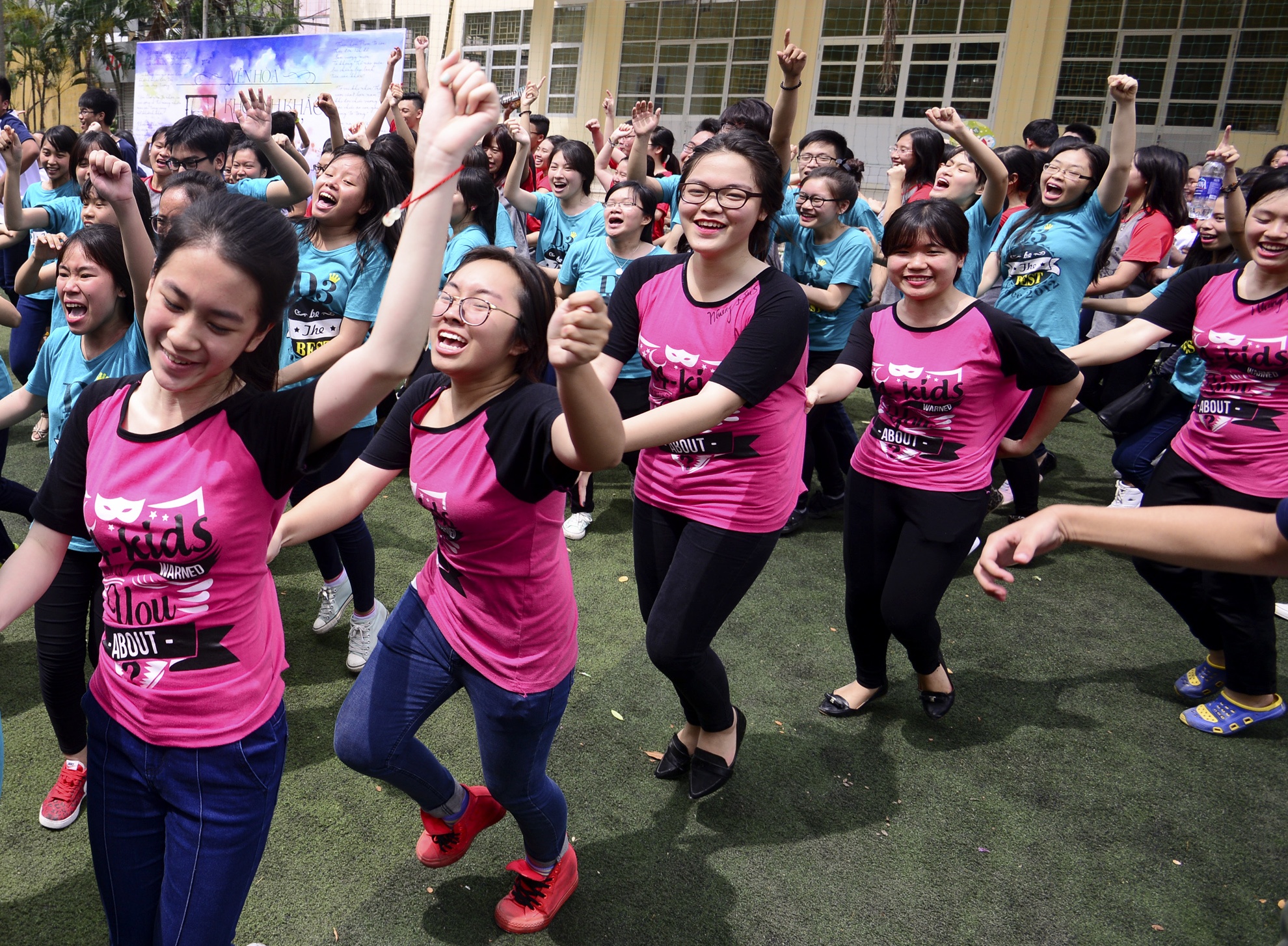 Ngoài múa hát, nhảy, các bạn trẻ còn tổ chức những trò chơi thể thao trên sân trường nhiều kỷ niệm.