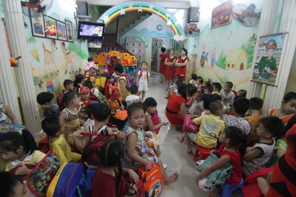 | Đến 15h30, chỉ còn 40 bé trong sĩ số 200 bé chưa có phụ huynh đến đón. |