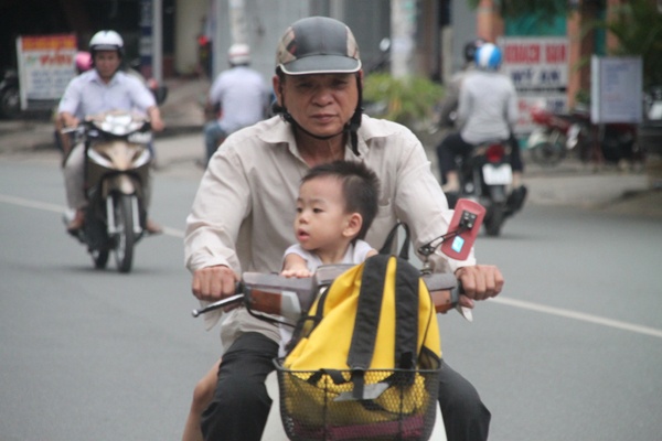 | Bác Nguyễn Văn Thành (50 tuổi) đến đón con tại trường mầm non Bình Hòa từ 3 giờ, sớm hơn môt tiếng so với ngày thường. "Sáng nay khi hầu hết phụ huynh đều đã đến đón con mặc dù tôi cũng hoang mang không biết bão có vào hay không nhưng vì bận công việc nên giờ mới tới đón kịp". |