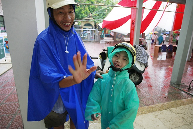 Cũng trong sáng nay, nhiều trường trên địa bàn không tổ chức khai giảng do mưa quá to. Tại trường Xã Đàn, nhà trường thuê một chiếc ô cỡ lớn để che mưa, gió nên diễn ra thuận lợi và an toàn.