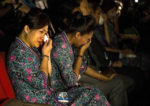 | Tiếp viên Malaysia khóc trong lễ cầu nguyện cho các nạn nhân thiệt mạng trong thảm kịch MH17. Ảnh: EPA |