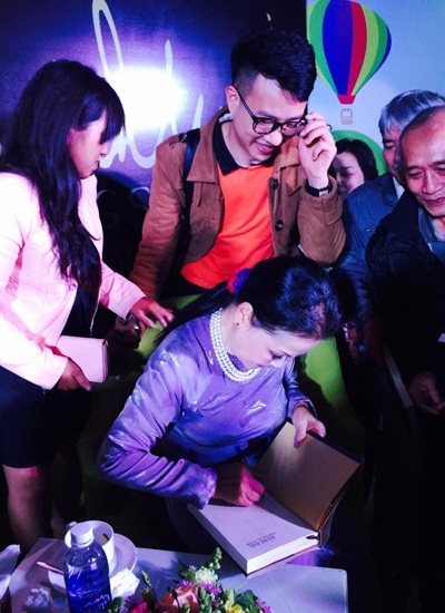 | Khánh Ly ký tặng sách hồi ký cho độc giả. Ảnh: P.N.P |
