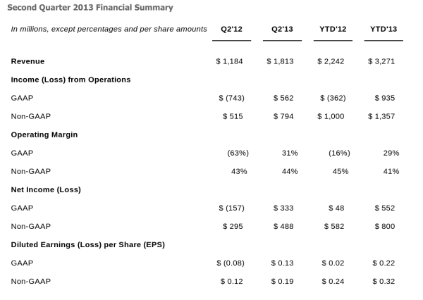 | Tóm tắt báo cáo tài chính quý 2/2013 của Facebook. |