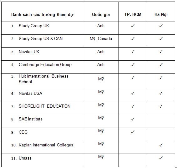 Chương trình Hội thảo và phỏng vấn du học Mỹ và Vương Quốc Anh do IDP tổ chức vào ngày 30/10 tại Hà Nội và 31/10 tại TP.HCM. Hội thảo sẽ cung cấp cho bạn thông tin cập nhật, hữu ích về du học Mỹ và Vương quốc Anh cũng như cơ hội trao đổi, phỏng vấn trực tiếp với các đại diện trường. Đặc biệt bạn sẽ nhận được lệ phí thi IELTS trị giá 3,5 triệu đồng khi nộp đơn nhập học tại chỗ.