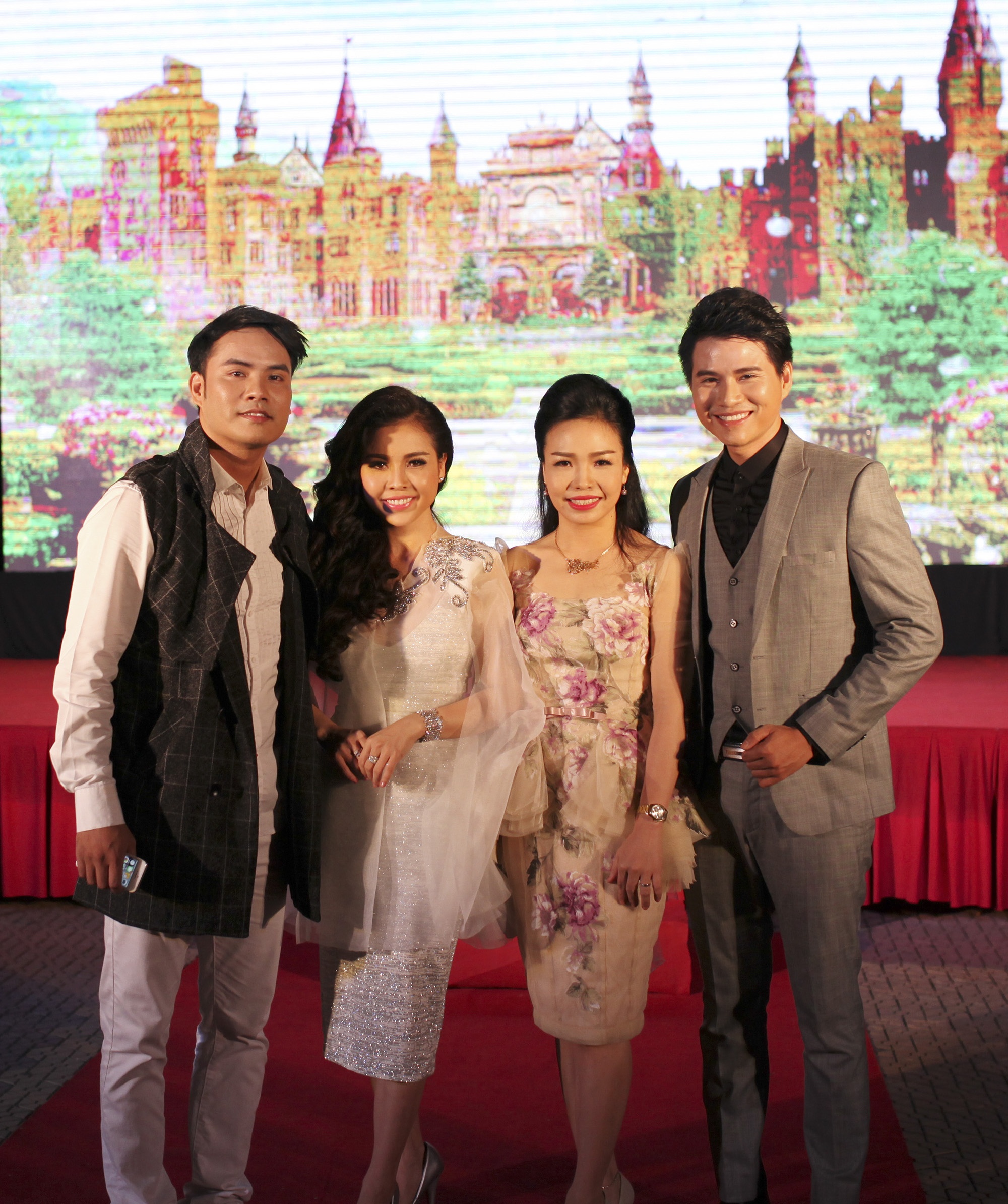 | Từ trái qua: ca sĩ A Tuân bên cạnh người chị thân thiết Tổng giám đốc Angel Beauty - Mã Đào Ngọc Bích, Á khôi doanh nhân Mã Lý Thiên Kim, MC Vũ Mạnh Cường. |