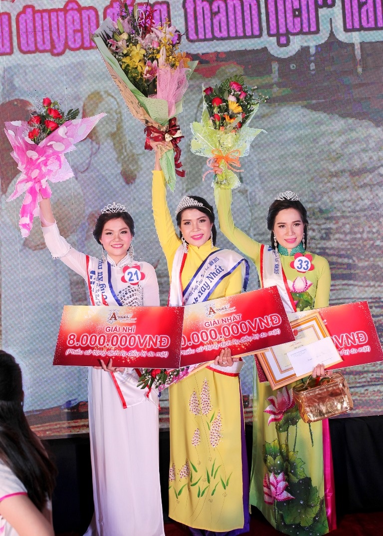 | Với sự đầu tư kỹ càng, các thí sinh đã xuất sắc và tự tin khi lần lượt thử sức qua các phần thi gay cấn: thi năng khiếu, xử lý tình huống, trình diễn trang phục dạ tiệc và trang phục áo dài. Vượt qua các thí sinh chung cuộc, 3 gương mặt sáng giá Nguyễn Bảo Ngọc Thúy Vy, Bùi Anh Thư, Mạc Thị Kiều Trinh vinh danh nhận giải nhất, nhì, ba. |