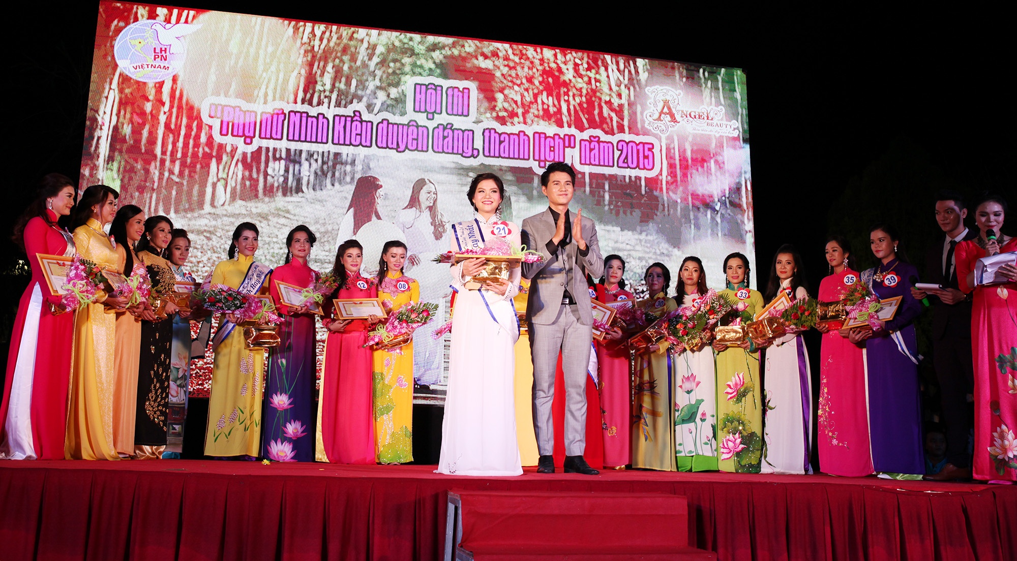 | Ca sĩ A Tuân trình bày ca khúc do chính anh sáng tác kết hợp trình diễn cùng 20 thí sinh đêm chung kết. Cùng với sự tài trợ chiến lược của Viện làm đẹp và chăm sóc da công nghệ cao Angel Beauty, hội thi Phụ nữ Ninh Kiều duyên dáng, thanh lịch năm 2015 do Hội Liên hiệp Phụ nữ quận Ninh Kiều tổ chức với mong muốn chào mừng ngày Phụ nữ Việt Nam 20/10 sắp tới cũng như kỷ niệm 85 năm ngày thành lập Hội Liên hiệp Phụ nữ Việt Nam. |