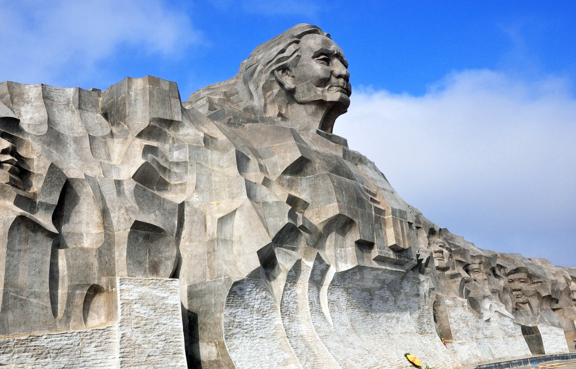 | Tượng đài được làm từ hơn 3.000 m3 đá sa thạch, có hình cánh cung dài 117 m, chính giữa khối tượng đài là chân dung Mẹ Nguyễn Thị Thứ cao 18,37 m. |