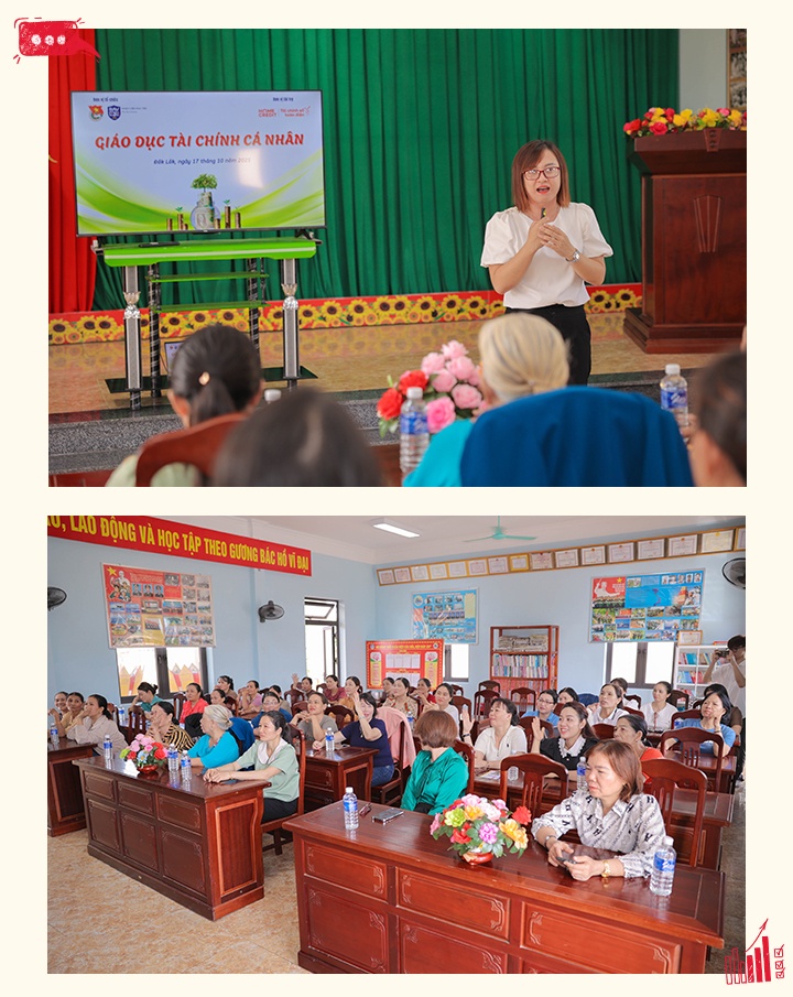 Các lớp học được thiết kế phù hợp từng nhóm đối tượng, giúp người tham gia dễ dàng áp dụng vào đời sống thực tế. Chị em phụ nữ được trang bị kỹ năng quản lý ngân sách gia đình, cũng như nguyên tắc tiết kiệm và vay vốn an toàn, từ đó có thể chủ động lên kế hoạch tài chính và phòng ngừa rủi ro tín dụng đen. Trong khi đó, học sinh có cơ hội tìm hiểu kiến thức cơ bản về tiết kiệm, chi tiêu hợp lý và được hướng dẫn rèn luyện thói quen quản lý tiền bạc với nguyên tắc “3 hũ”: Tiết kiệm - chi tiêu - chia sẻ.