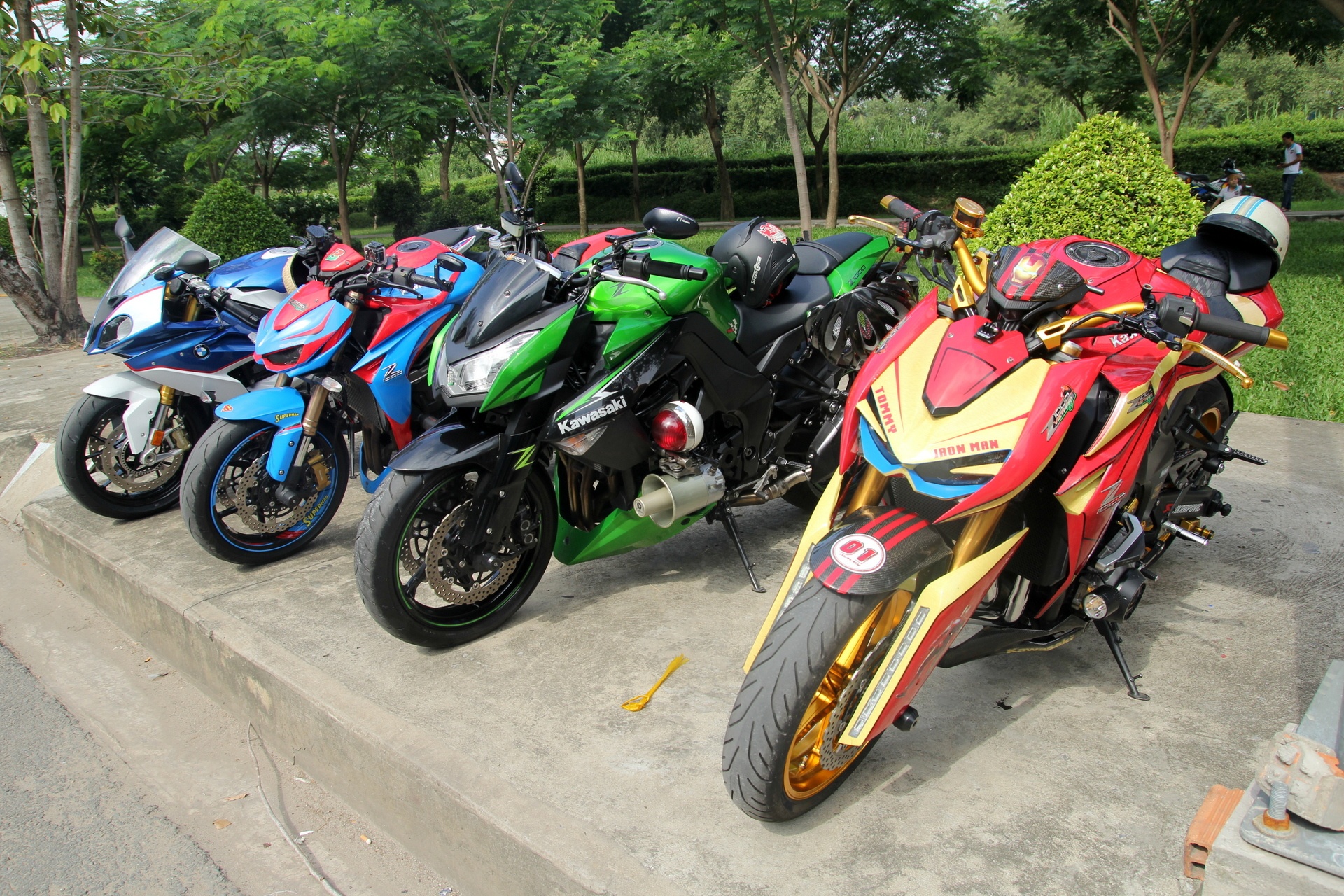 | Ngoài nhân vật chính là những chiếc Exciter, dàn xe phân khối lớn độ nhiều màu sắc làm nhiệm vụ dẫn đường được đặt vị trí nổi bật. Trong số này có ba chiếc Z1000 và một BMW S1000RR. |