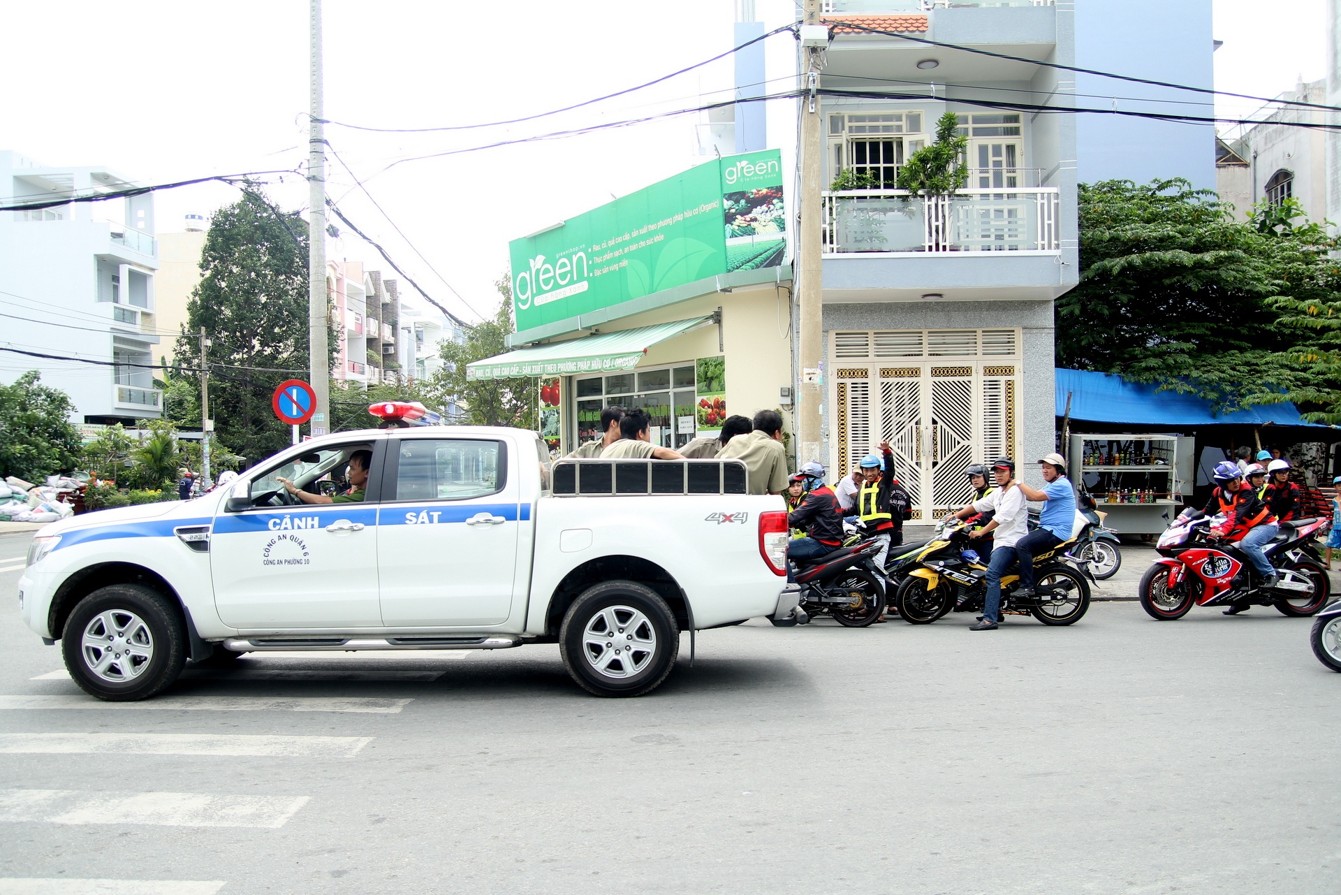 | Xe cảnh sát giao thông hỗ trợ dẫn đường. |