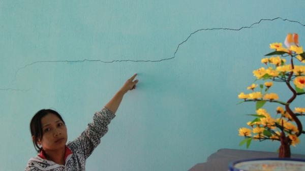 Cách đây khoảng một năm, công ty TNHH Thành Đạt dùng mìn phá đá thi công dự án nhà máy thủy điện Sông Pha 1 khiến hơn 100 nhà dân bị hư hỏng, nứt tường, nứt nền, bể mái. Người dân có nhà bị hư cho biết việc đền bù tiến hành quá chậm.