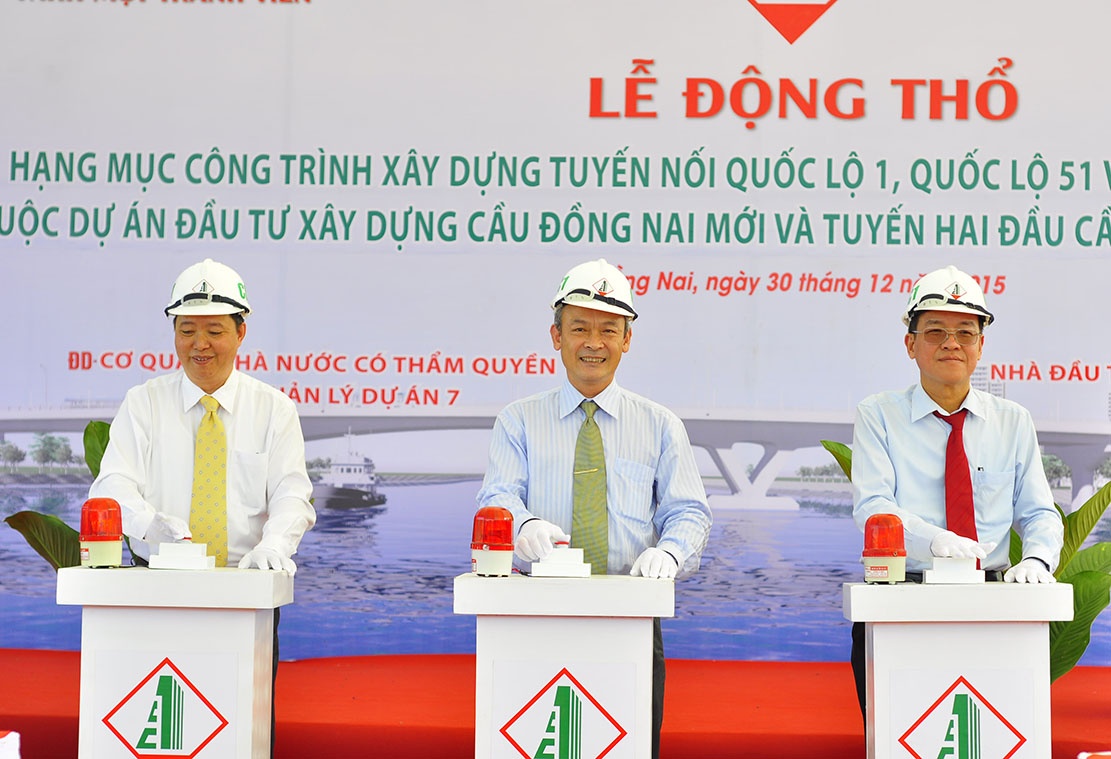 | Lãnh đạo tỉnh Đồng Nai ấn nút khởi công dự án cầu An Hảo và các hạng mục công trình tuyến nối quốc lộ 1, quốc lộ 51 với quốc lộ 1K. Ảnh: Ngọc An |