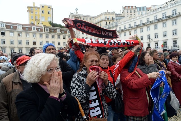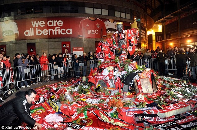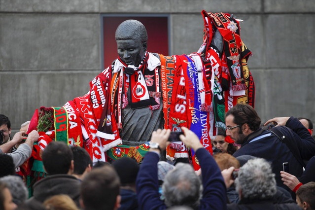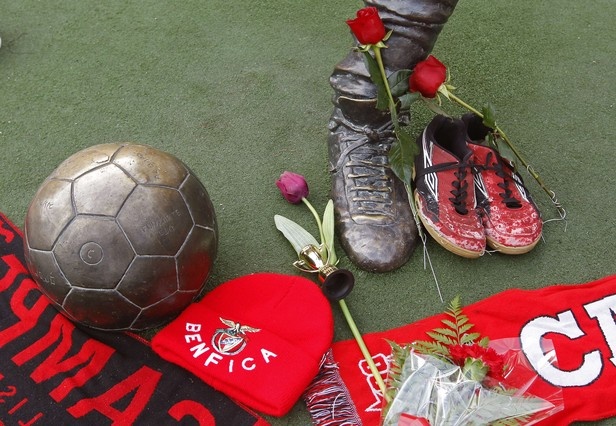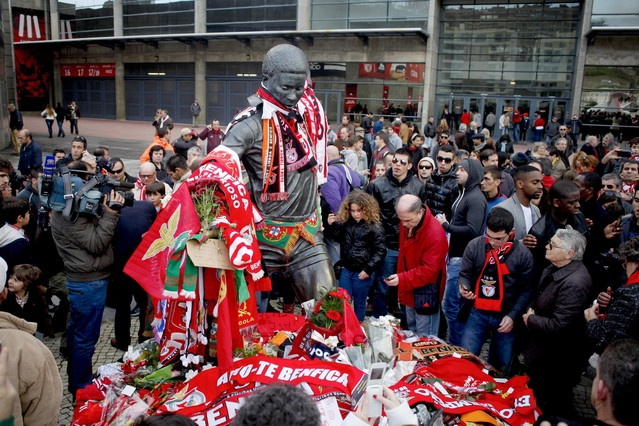 Trong khi đó, bên ngoài sân vận động, người hâm mộ đặt hoa, cờ, khoác áo đấu lên tượng đài Eusebio để tri ân tới ông.