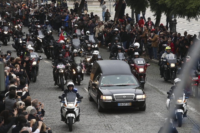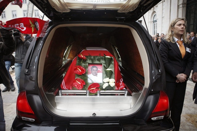 Linh cữu của “báo đen” được đưa ra xe tang và diễu hành trên nhiều tuyến phố chính tại Lisbon trước khi đưa về sân vận động Estadio da Luz tổ chức tang lễ.