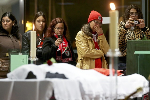 Hàng ngàn người hâm mộ xếp hàng dài trước cửa nhà tang lễ, mong được nhìn mặt người hùng của bóng đá Bồ Đào Nha lần cuối trước khi đưa tiễn ông về nơi an nghỉ cuối cùng.