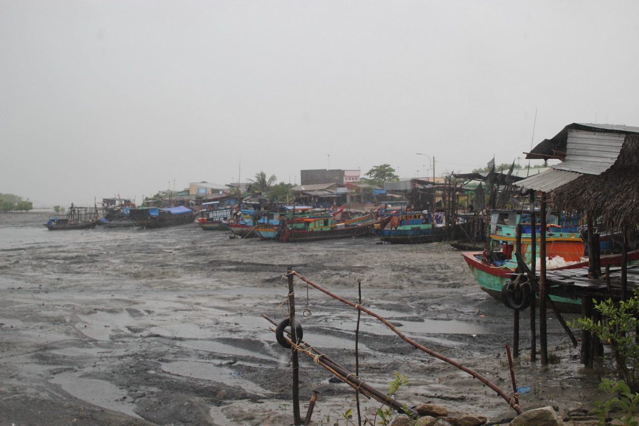 | Tại các âu thuyền ở Cần Giờ thời điểm gần trưa 7/11, thủy triều xuống nên các thuyền trú bão đang nằm trên bùn. Ông Lê Văn Thơm, Phó chủ tịch, Trưởng ban Phòng chống lụt bão huyện Cần Giờ, cho biết nếu trong chiều hoặc sáng mai thời tiết tốt sẽ chỉ đạo các phương tiện đưa dân xã đảo về nhà. |