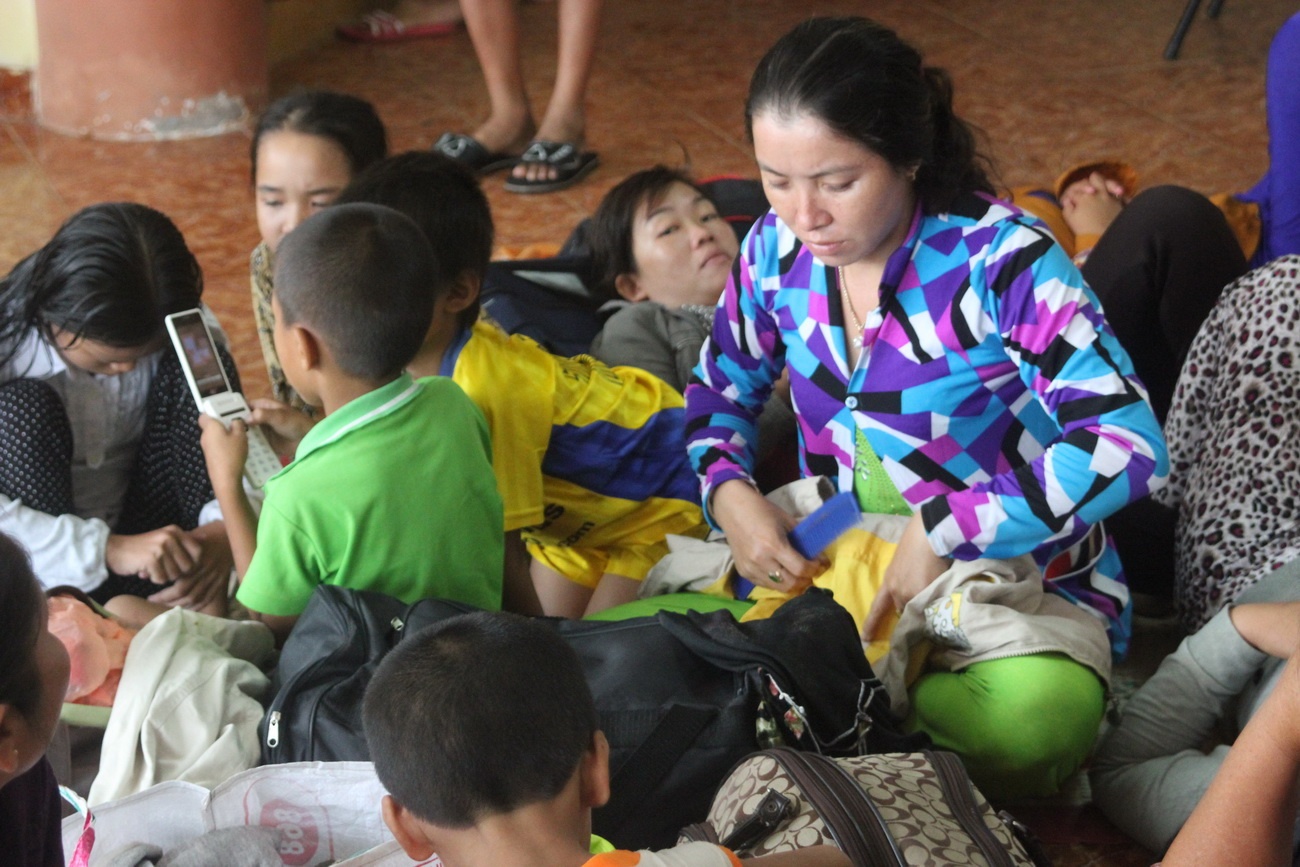 | Nhiều phụ nữ có con nhỏ cho biết việc chăm sóc các cháu rất khó khăn, nhiều cháu không quen môi trường lạ nên ăn uống, ngủ không được. |
