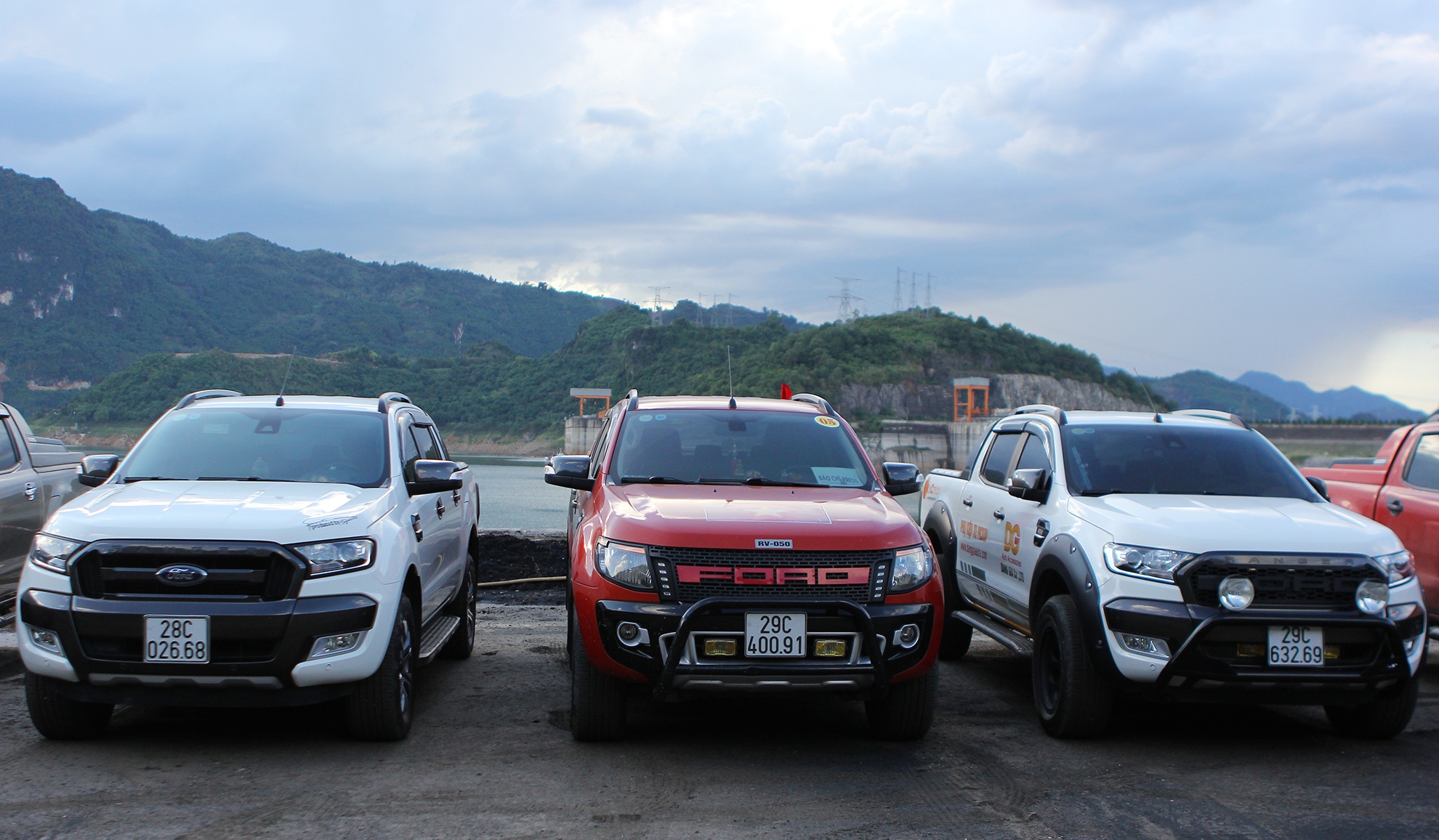 Dàn Ford Ranger với nhiều phiên bản, màu sắc khác nhau cùng tụ hội bên lòng hồ Hòa Bình nhân dịp kỷ niệm sinh nhật một năm câu lạc bộ VFRC.