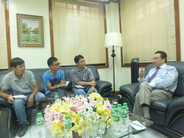 Các PV trao đổi thông tin với Đại sứ Trương Triều Dương tại trụ sở ĐSQ Việt Nam tại Philippines sáng 22/11.